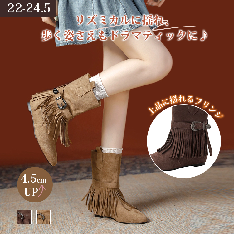 KENPOGEN パンプス ショートブーツ フリンジデザイン インヒール 4.5cmUP 履きやすい 疲れにくい843 円引き