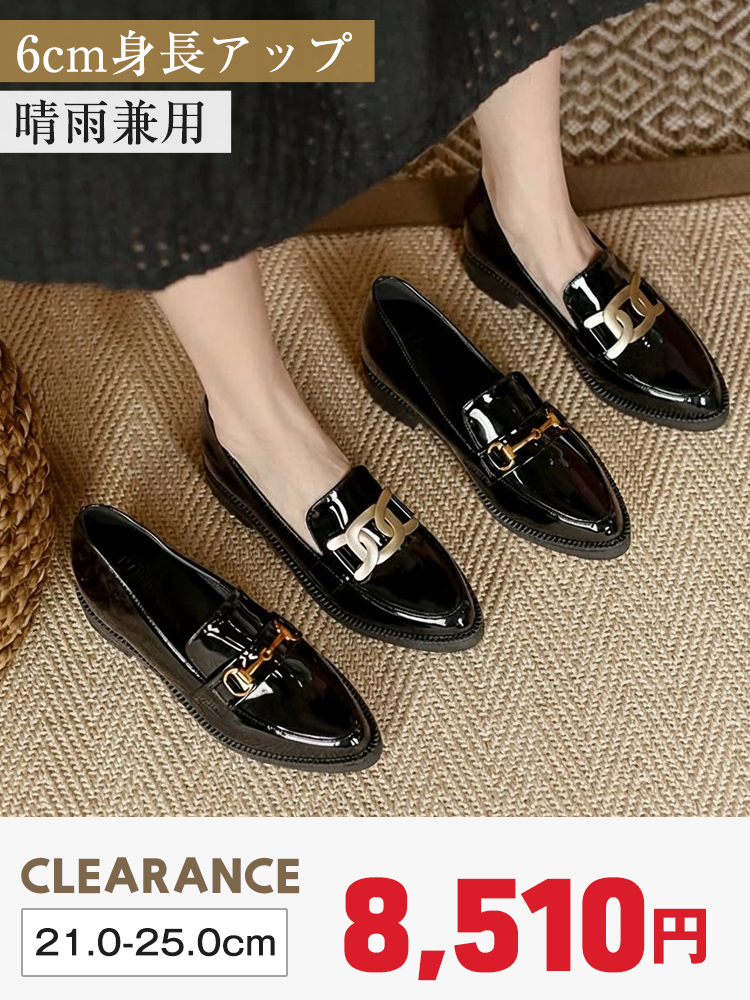 【6cm身長アップ・晴雨兼用】KENPOGEN エナメルローファー インヒール 痛くない 防水 ポインテッドトゥ 通勤 幅広 疲れない1,220 円引き