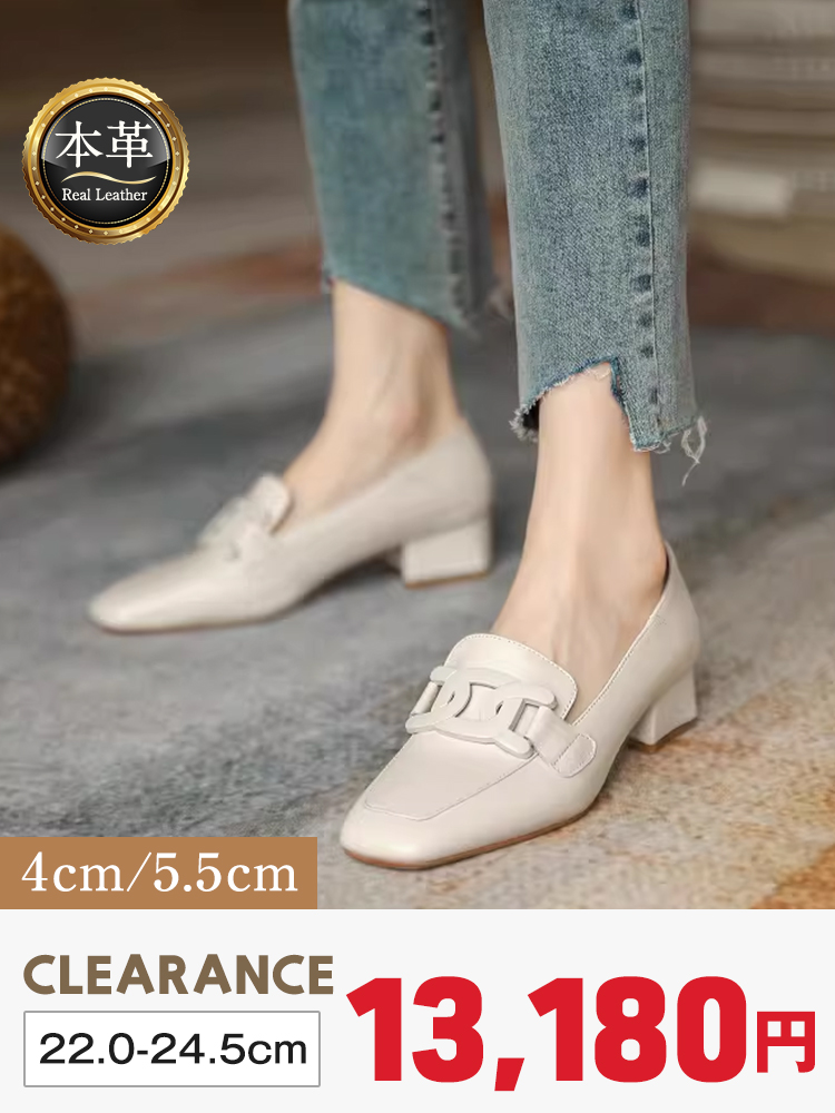 【職人仕立ての本革】KENPOGEN スクエアトゥ ローファー 牛革 4cm/5.5cmUP チャンキーヒール チェーンモチーフ 疲れにくい 通勤 オフィス2,500 円引き
