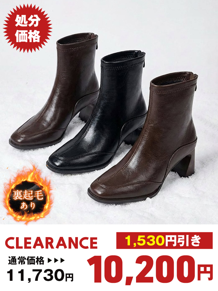 【足首キュッと細見え】KENPOGEN スクエアトゥブーツ 4.5cmUP チャンキーヒール サイドファスナー 着脱簡単 歩きやすい 選べる裏起毛 通勤 デート3,640 円引き