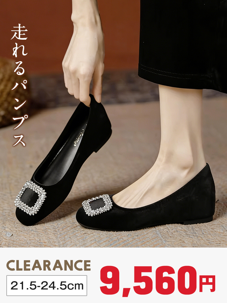 【魔法の美脚見え】KENPOGEN ビジューバックルパンプス ポインテッドトゥ インヒール 4cmUP 起毛素材 柔らかい 通勤 お呼ばれ4,120 円引き