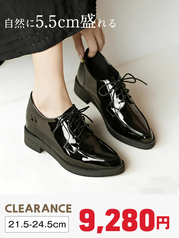 【自然に5.5cm盛れる】KENPOGEN レースアップシューズ レディース ポインテッドトゥ エナメル素材 インヒール 歩きやすい ブラック 通勤 仕事用