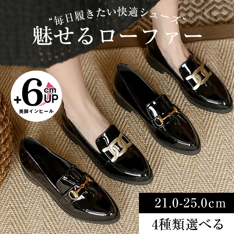 【6cm身長アップ・晴雨兼用】KENPOGEN エナメルローファー インヒール 痛くない 防水 ポインテッドトゥ 通勤 幅広 疲れない1,220 円引き