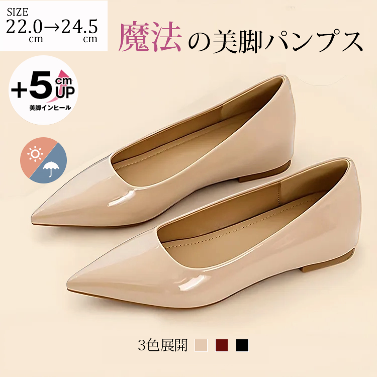 【上品な艶めき】KENPOGEN エナメルパンプス ポインテッドトゥ インヒール 4cmUP 痛くない 走れる 晴雨兼用 通勤 オフィス750 円引き