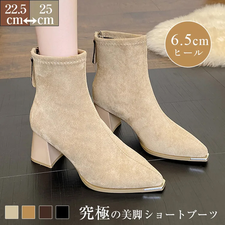 【とろける肌触り】KENPOGEN ショートブーツ スエード調 6.5cmUP チャンキーヒール 疲れにくい 安定感 通勤・秋冬 通勤 お出かけ