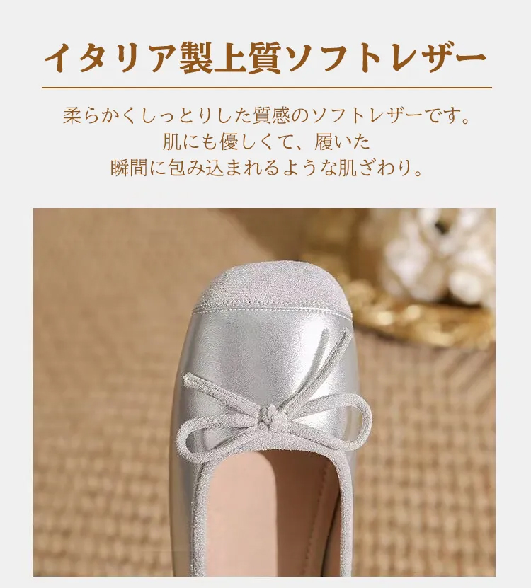 KENPOGEN バレエシューズ スクエアトゥパンプス 1cmヒール 幅広4E リボン 脱ぎ履きしやすい