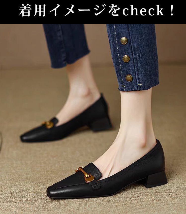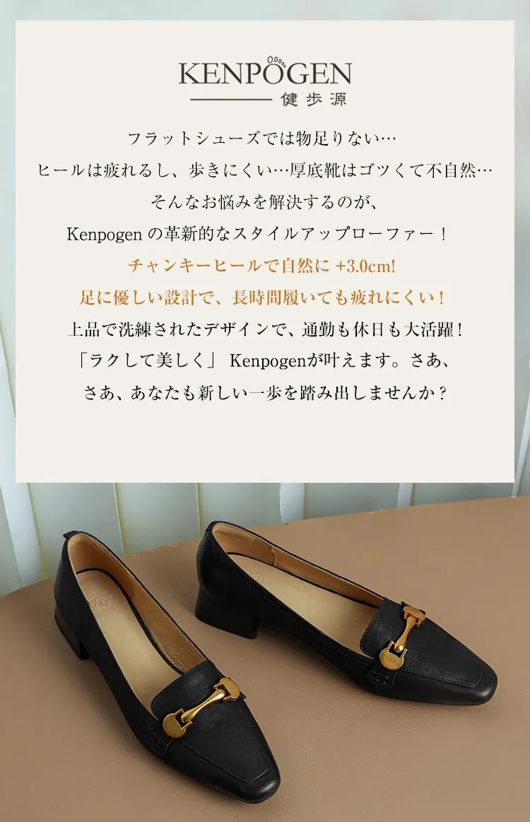 【足元スリム見せ】KENPOGEN ビットローファー 3cmUP スクエアトゥ 柔らかい 疲れない 軽量 美脚 就活 立ち仕事