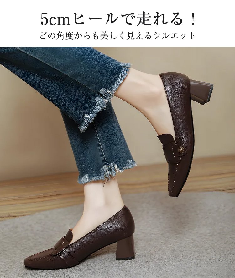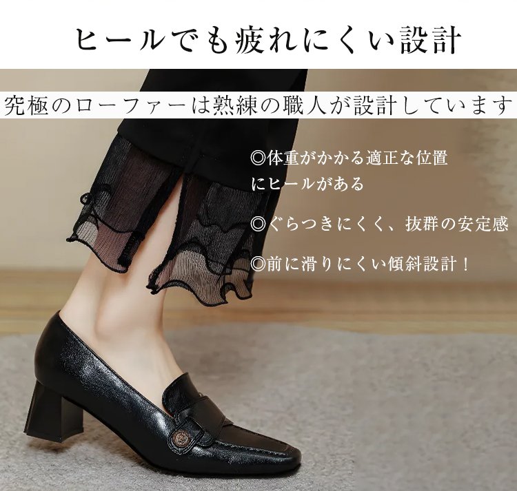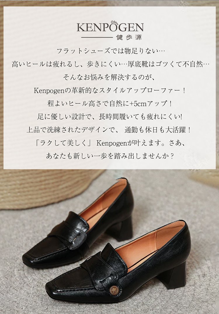 【靴擦れ知らず】KENPOGEN ローファー チャンキーヒール スクエアトゥ 5cmUP 柔らかい 安定感抜群 オフィス