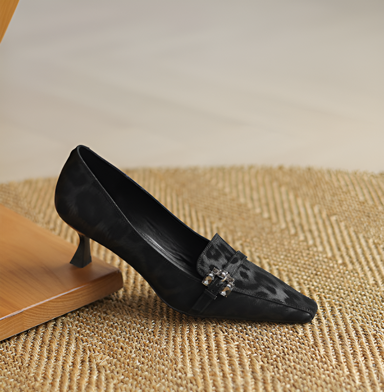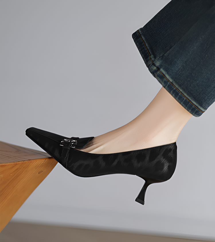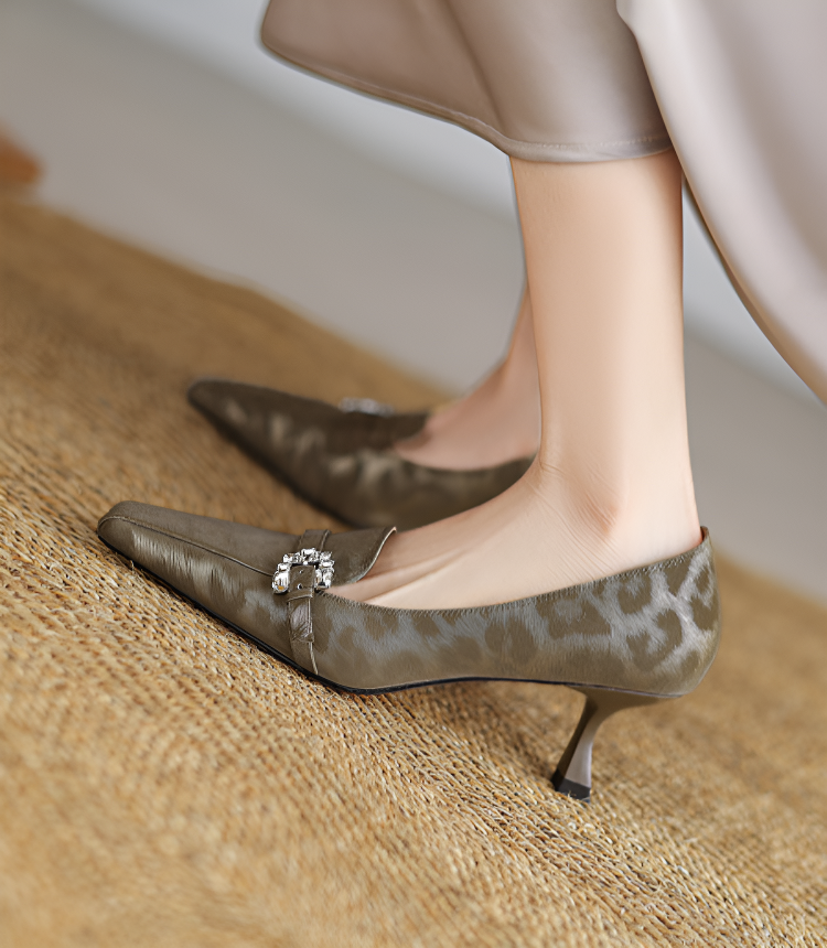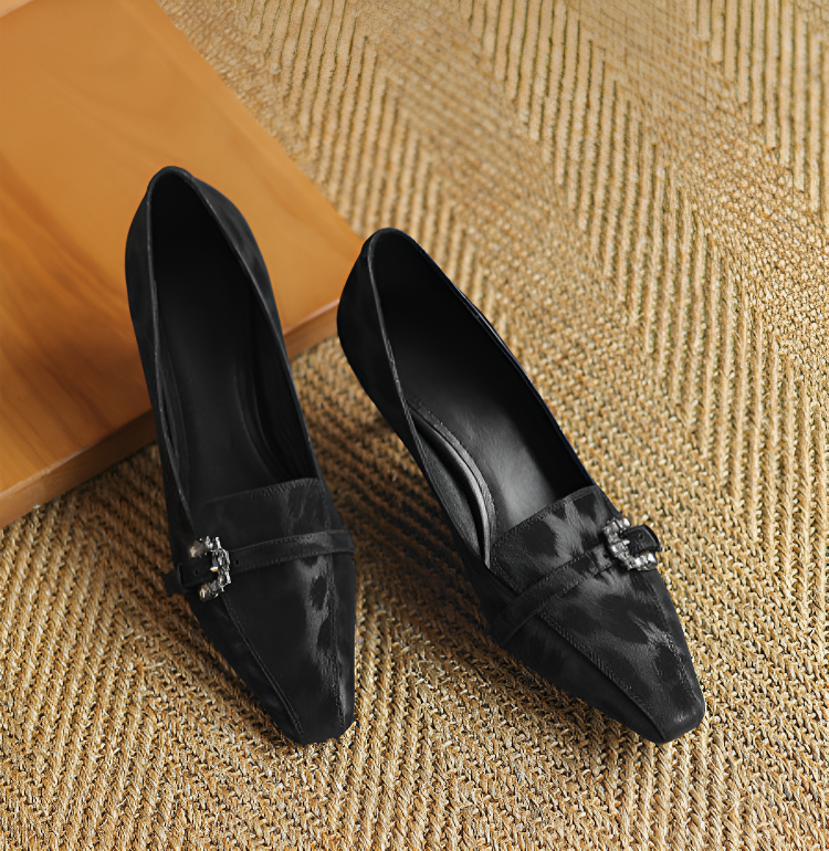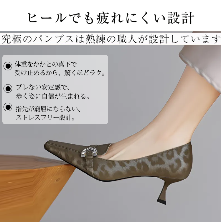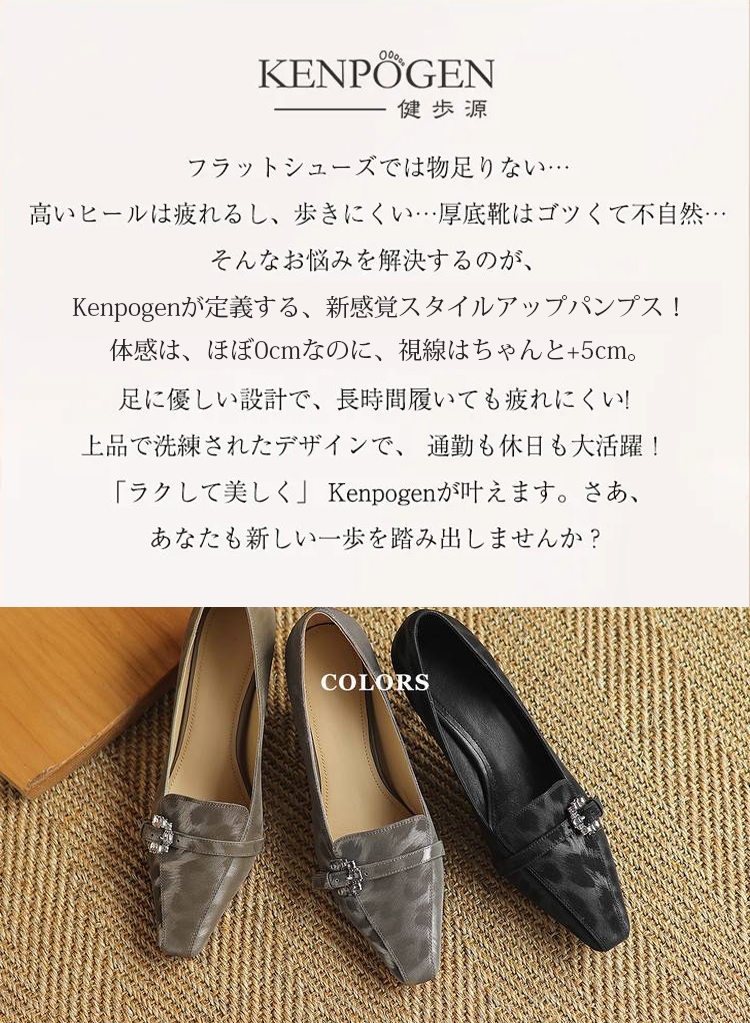 【上品なビジューの輝き】KENPOGEN 牛革 パンプス キトゥンヒール 5cm バックル飾り 美脚 手作り パーティー 結婚式