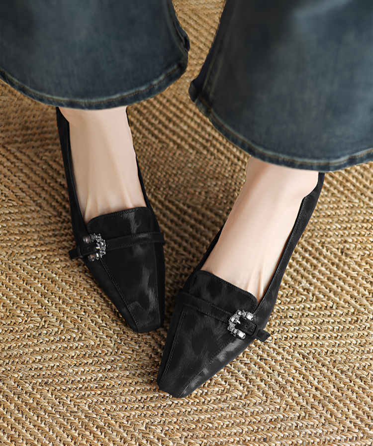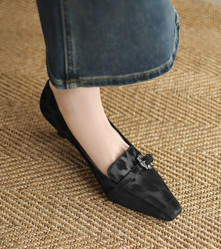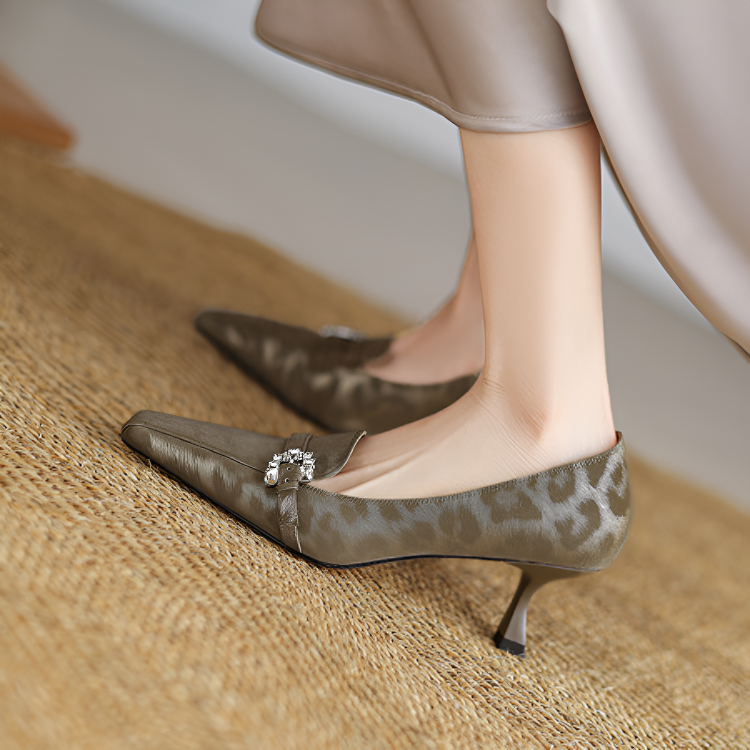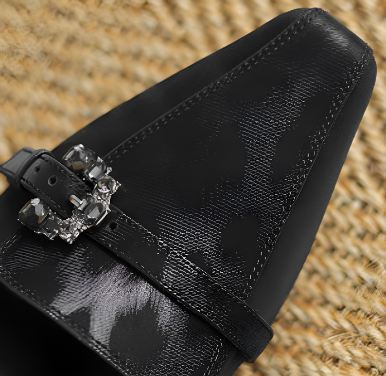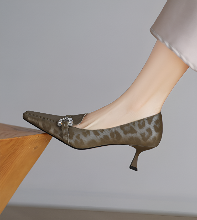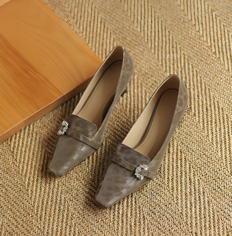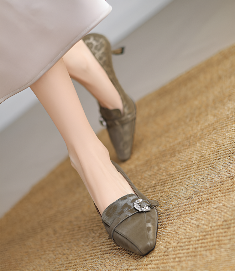 【上品なビジューの輝き】KENPOGEN 牛革 パンプス キトゥンヒール 5cm バックル飾り 美脚 手作り パーティー 結婚式