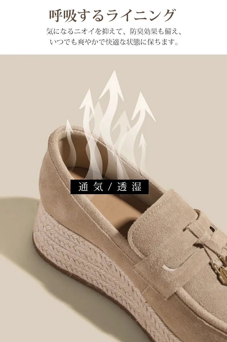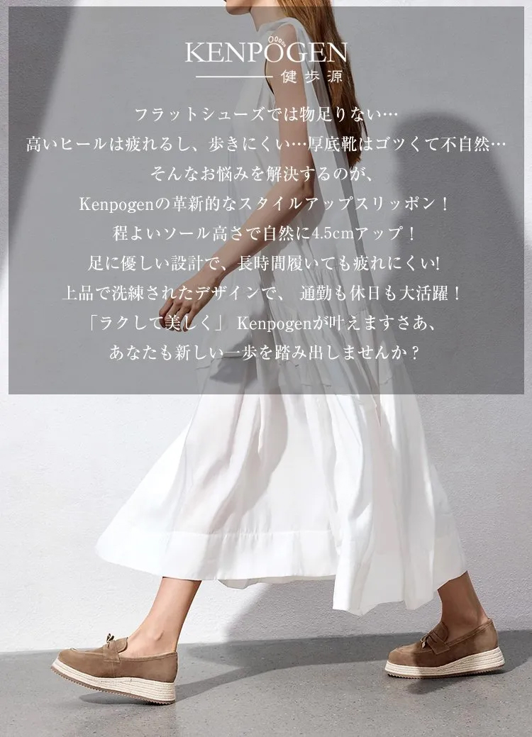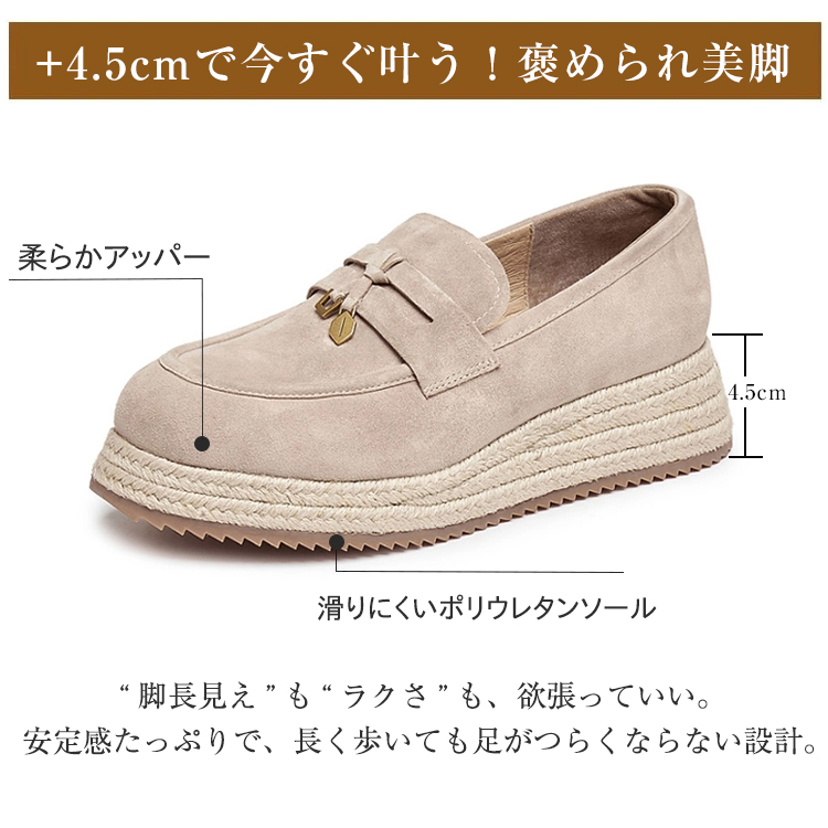 【大人可愛い飾り付き】KENPOGEN 厚底 ローファー スエード調 コインローファー 飾り付き 4.5cm/7cmUP 痛くない 歩きやすい 通勤