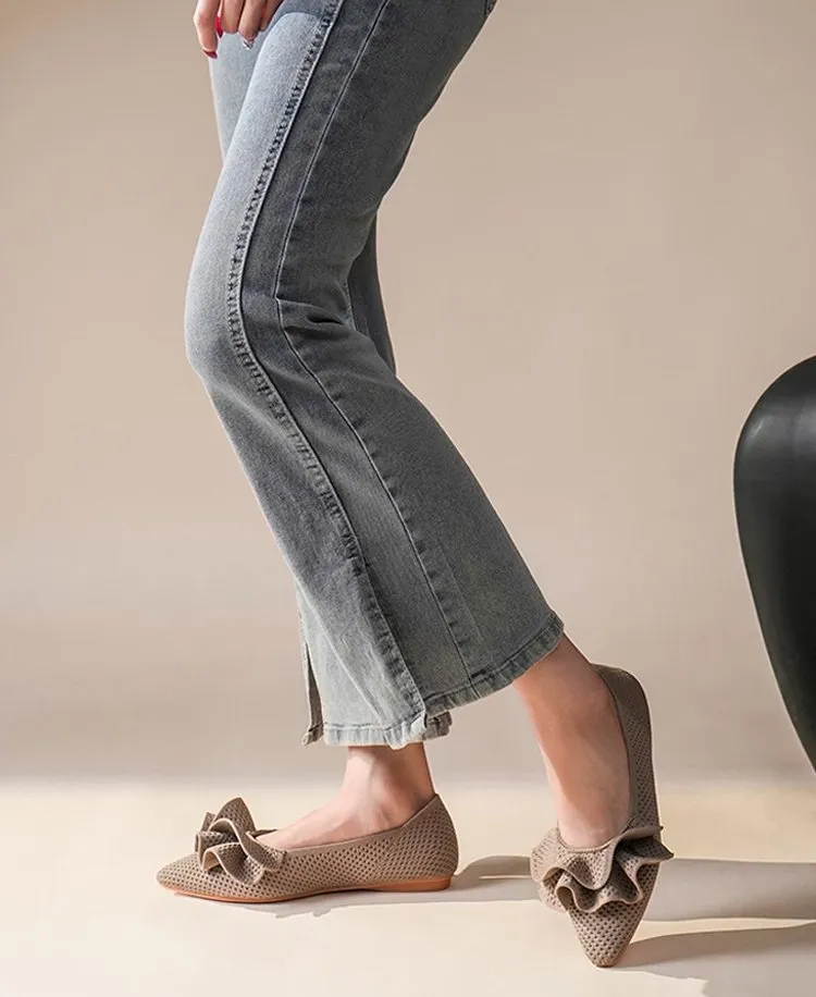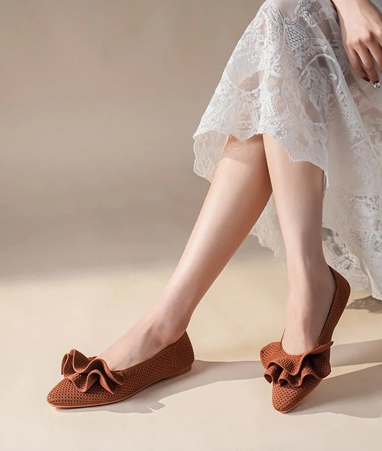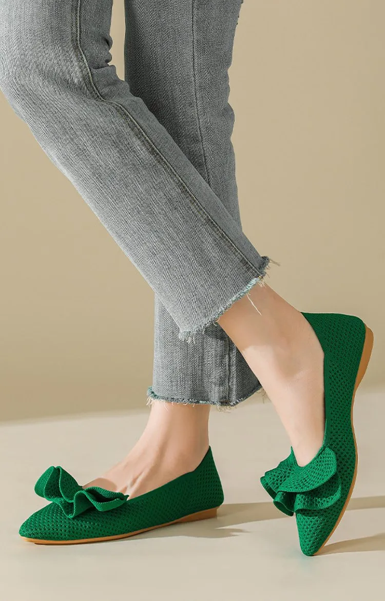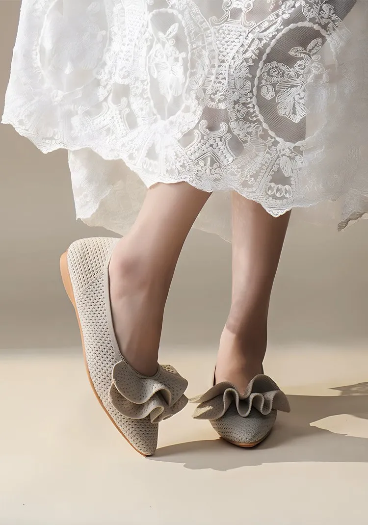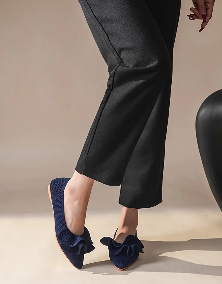 【洗濯機OK・大人可愛いフリル】KENPOGEN ニットパンプス ぺたんこ靴 スクエアトゥ 柔らかい 伸縮性 走れる 全十色展開 通勤 お出かけ